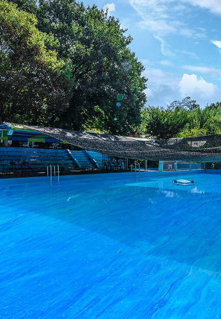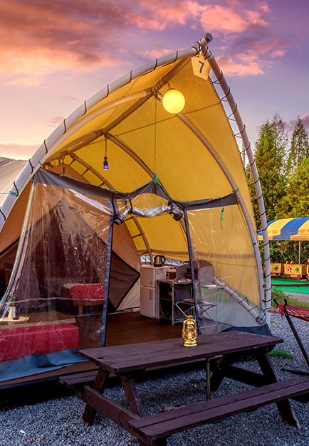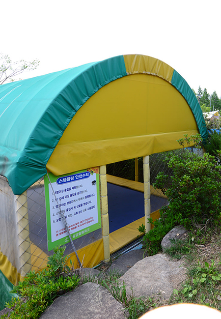신나게 뛰어놀 수 있는 트램폴린이 야외에 준비되어 있습니다.