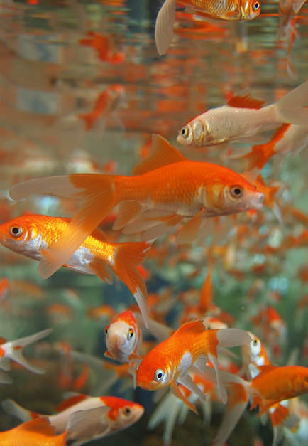뜰채로 금붕어를 잡는 체험을 할 수 있습니다.